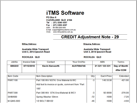 2. If Production Order Credit Adjustment Note items are required to be entered into Inventory this must be completed manually through Parts Stock In / Out.
